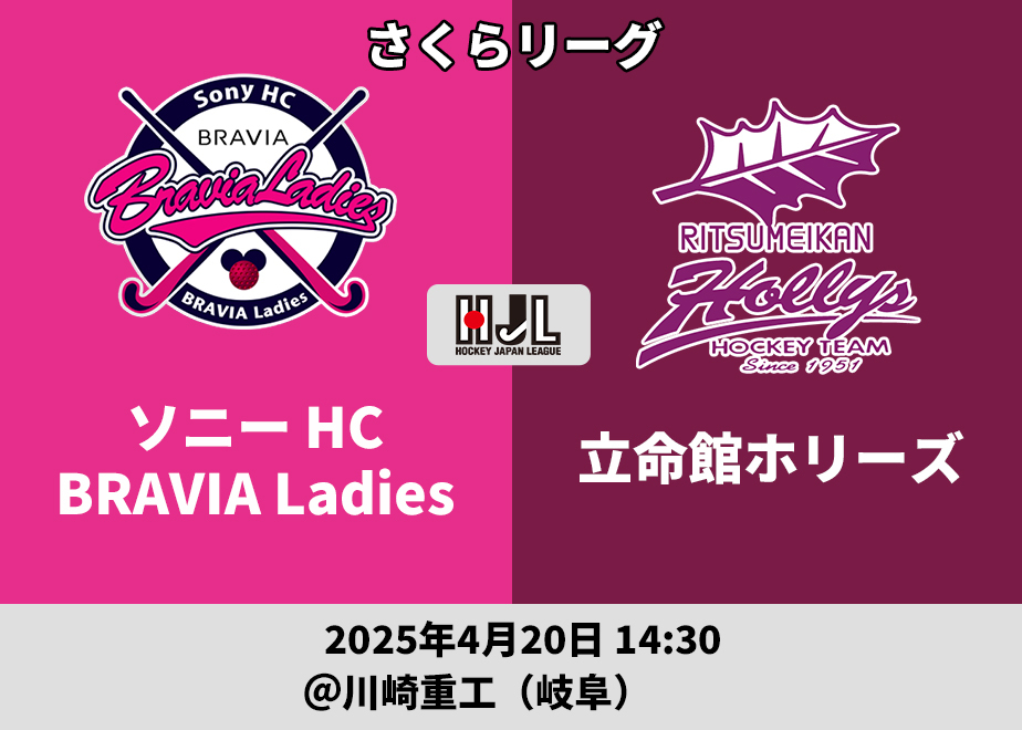 さくら#8  ソニーHC BRAVIA Ladies vs 立命館ホリーズ 4/20(日)川崎重工(岐阜)