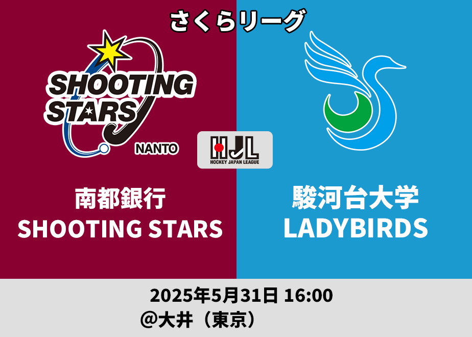 さくら#26 南都銀行SHOOTING STARS vs 駿河台大学LADYBIRDS 5/31(土)大井ホッケー競技場メインピッチ(東京)