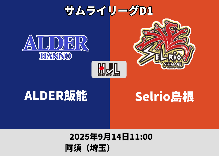 サムライD1#31 ALDER飯能 vs Selrio島根 9/14(日)阿須運動公園ホッケー場(埼玉・飯能市)