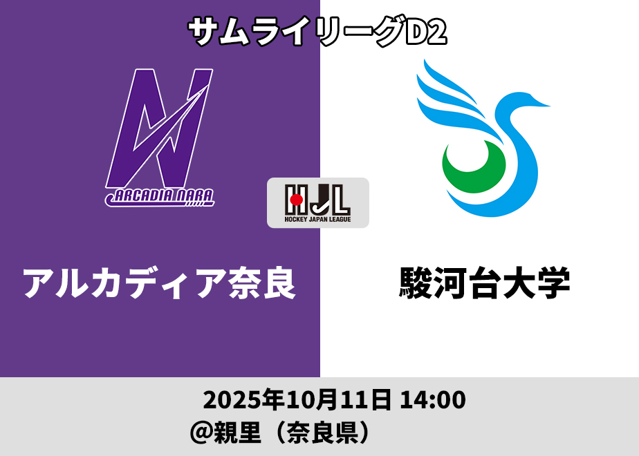 サムライD2#21 アルカディア奈良 vs 駿河台大学 10/11(土)親里ホッケー場(奈良)