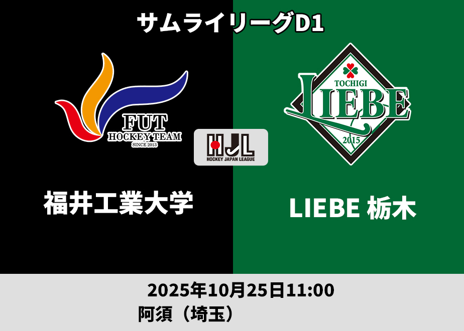 サムライD1#49 福井工業大学 vs LIEBE栃木 10/25(土)阿須運動公園ホッケー場(埼玉)