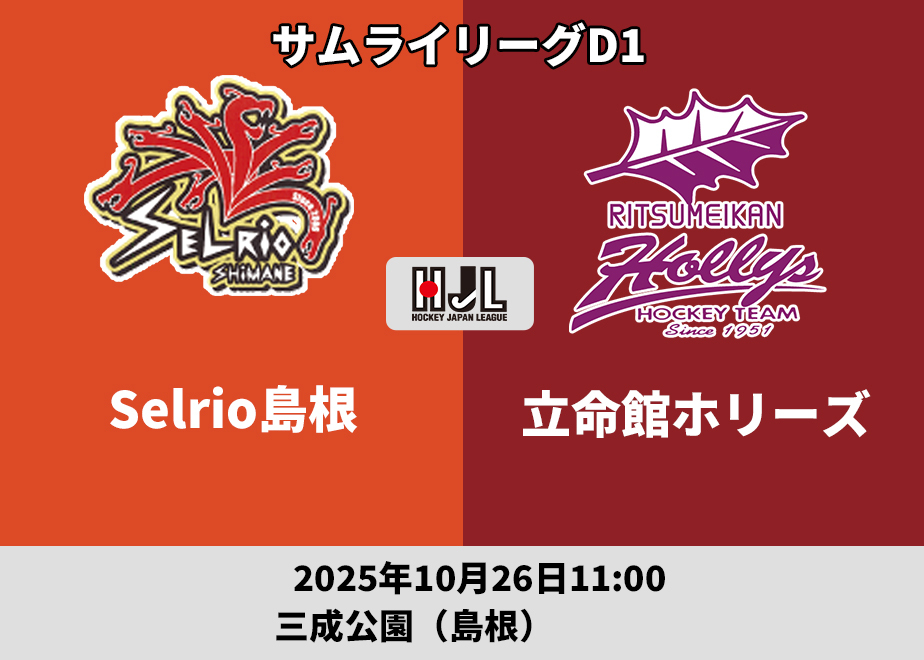 サムライD1#52 Selrio島根 vs 立命館ホリーズ 10/26(日)三成公園ホッケー場(島根)