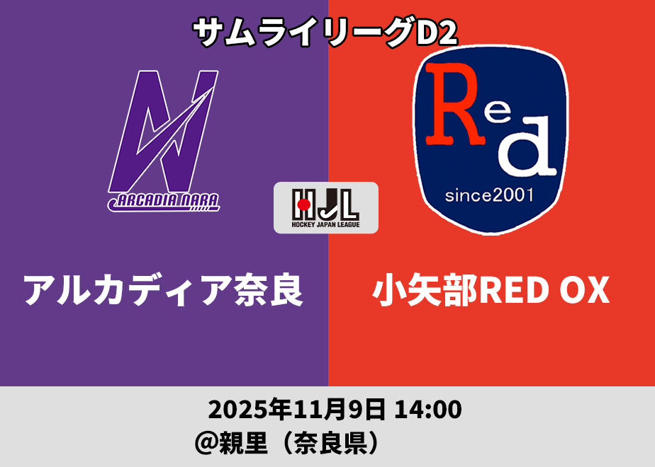 サムライD2#26 アルカディア奈良 vs 小矢部RED OX 11/9(日)親里ホッケー場(奈良)