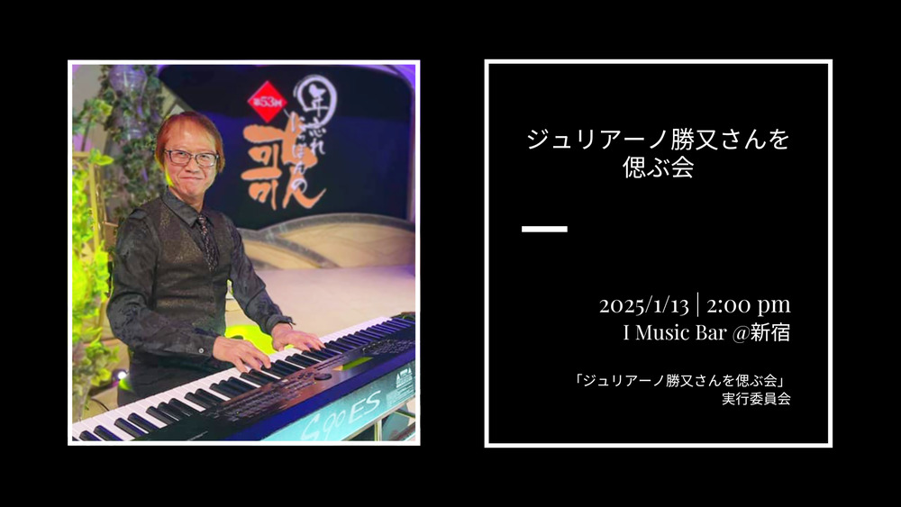 ジュリアーノ勝又さんの想い出や写真・動画などを見ながらお話をしたいと思います。