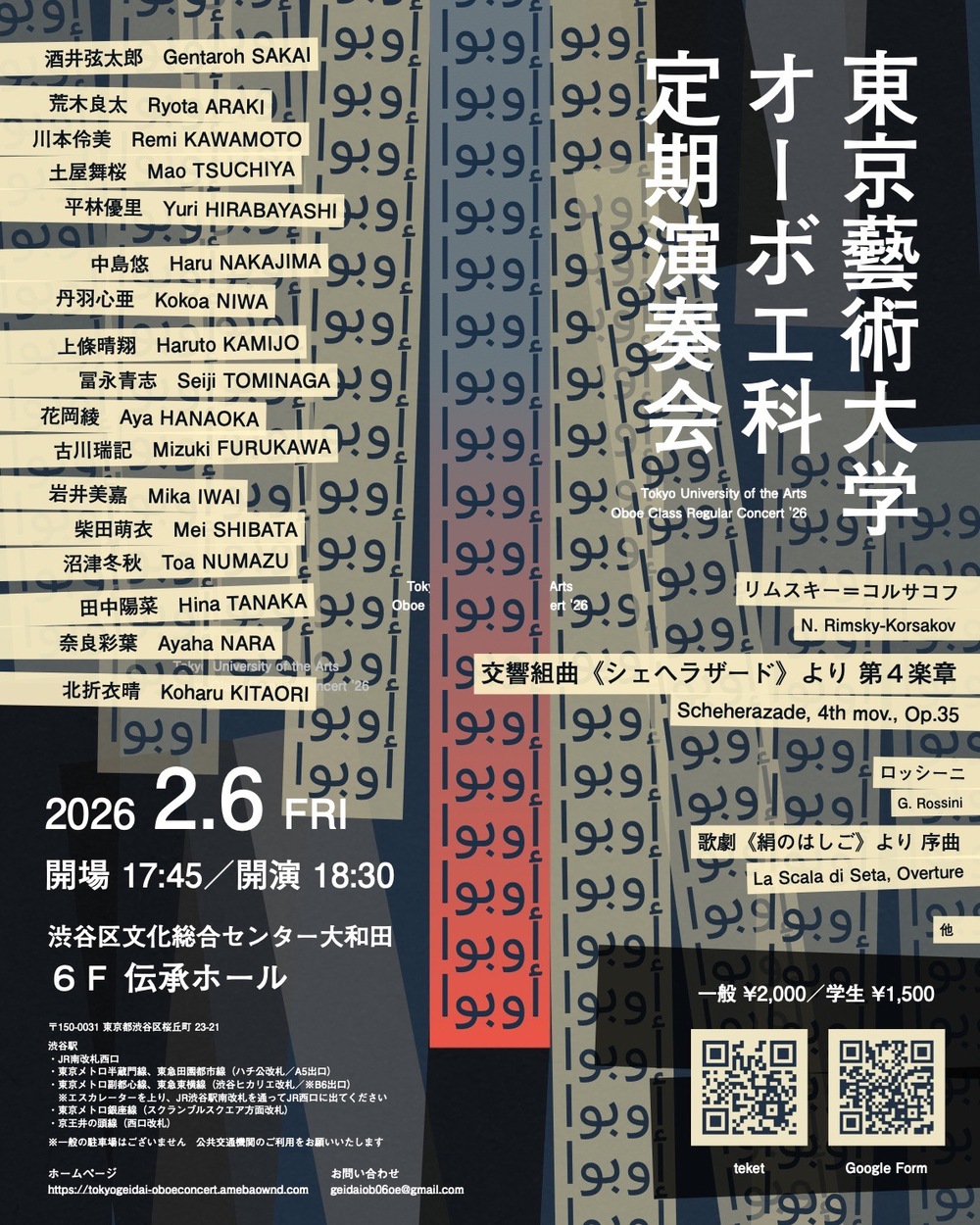 バラエティに富みつつも、オーボエの味わい深さを充分に楽しめるプログラムをご用意しており、聞き応え抜群の演奏会です♪♪