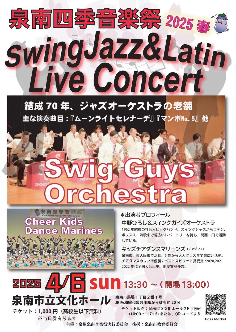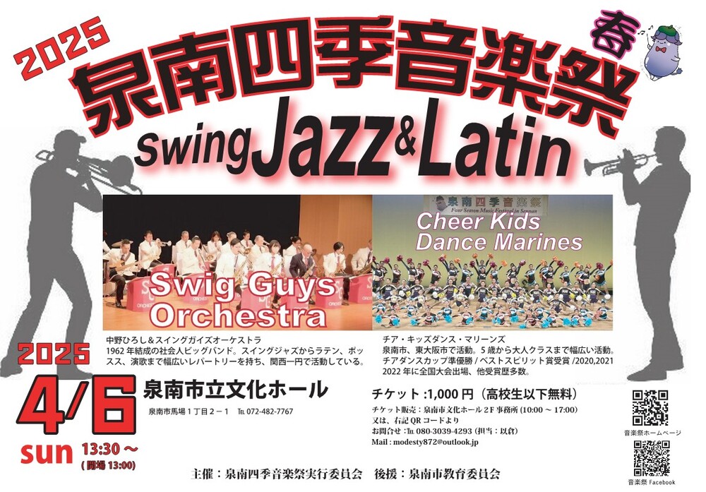 演奏:中野ひろし&スィングガイズオーケストラ=結成70年の関西の社会人ジャズバンドの老舗、大阪泉州を中心に関西一円で活動。大阪北の「ロイヤルホース」でのライブ、「シェラトン都ホテル大阪」でのランチタイムコンサート他、年間数十回を超えるライブ活動をこなす。