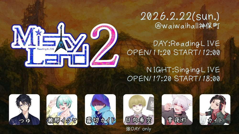 霧切カイト(主催)/常夜灯/つゆ/瀬那イクヤ/カイト/日向希空(昼回のみ)