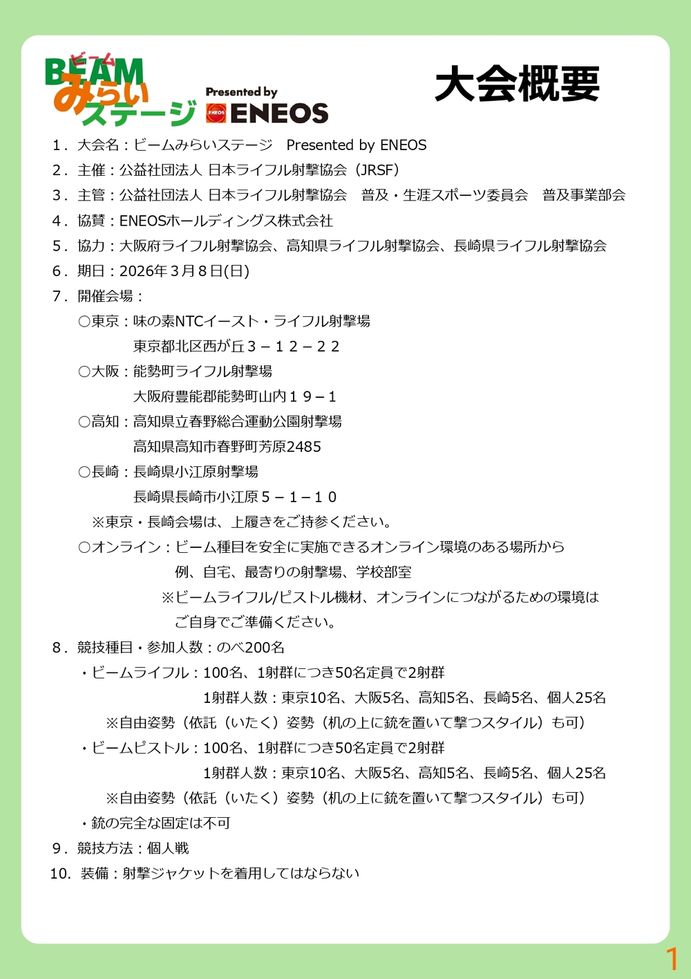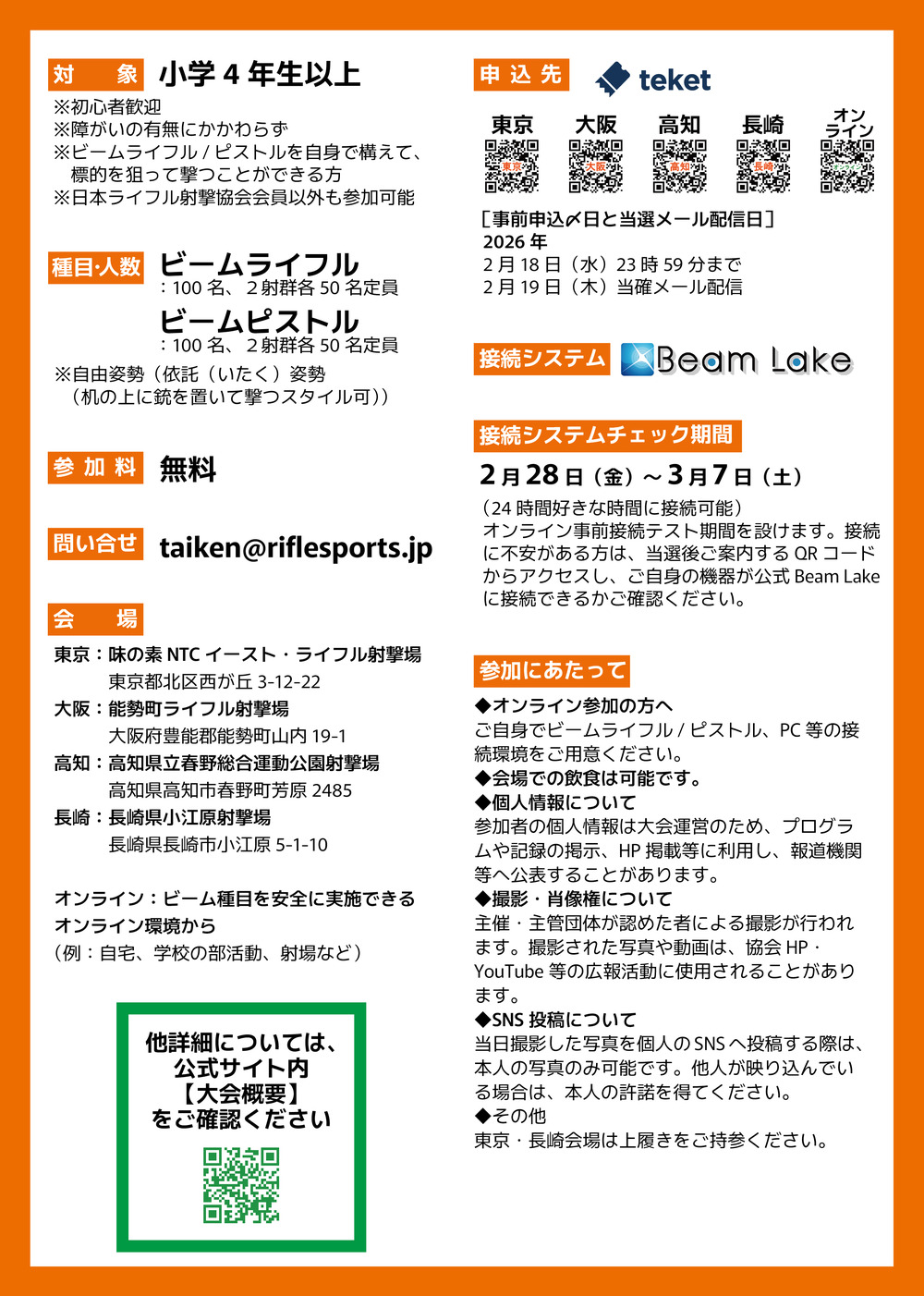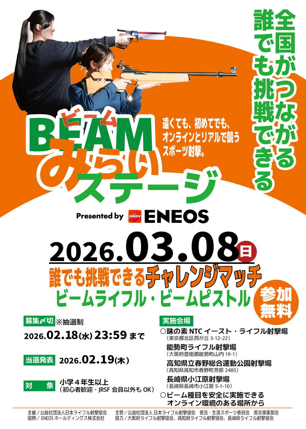 ◆ 主催: 公益社団法人 日本ライフル射撃協会 普及・生涯スポーツ委員会 普及事業部会