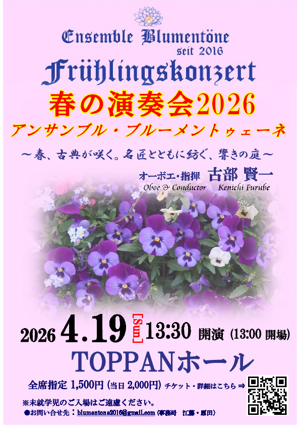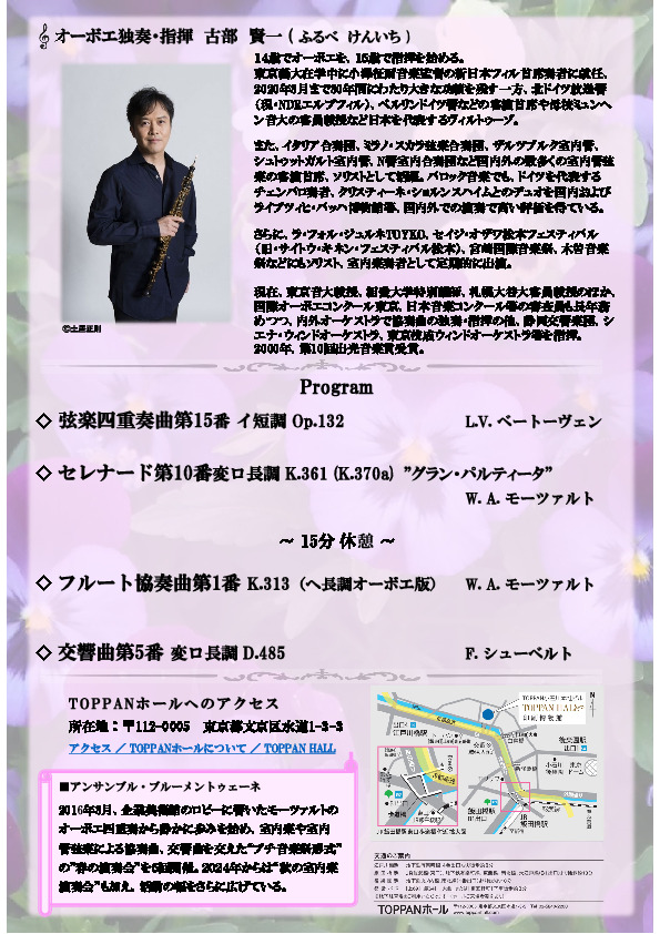 日本を代表するヴィルトゥオーゾ古部賢一氏とBlumentöneが紡ぐ、 ここでしか出会えない音楽の旅路に、どうぞ身を委ねてください。