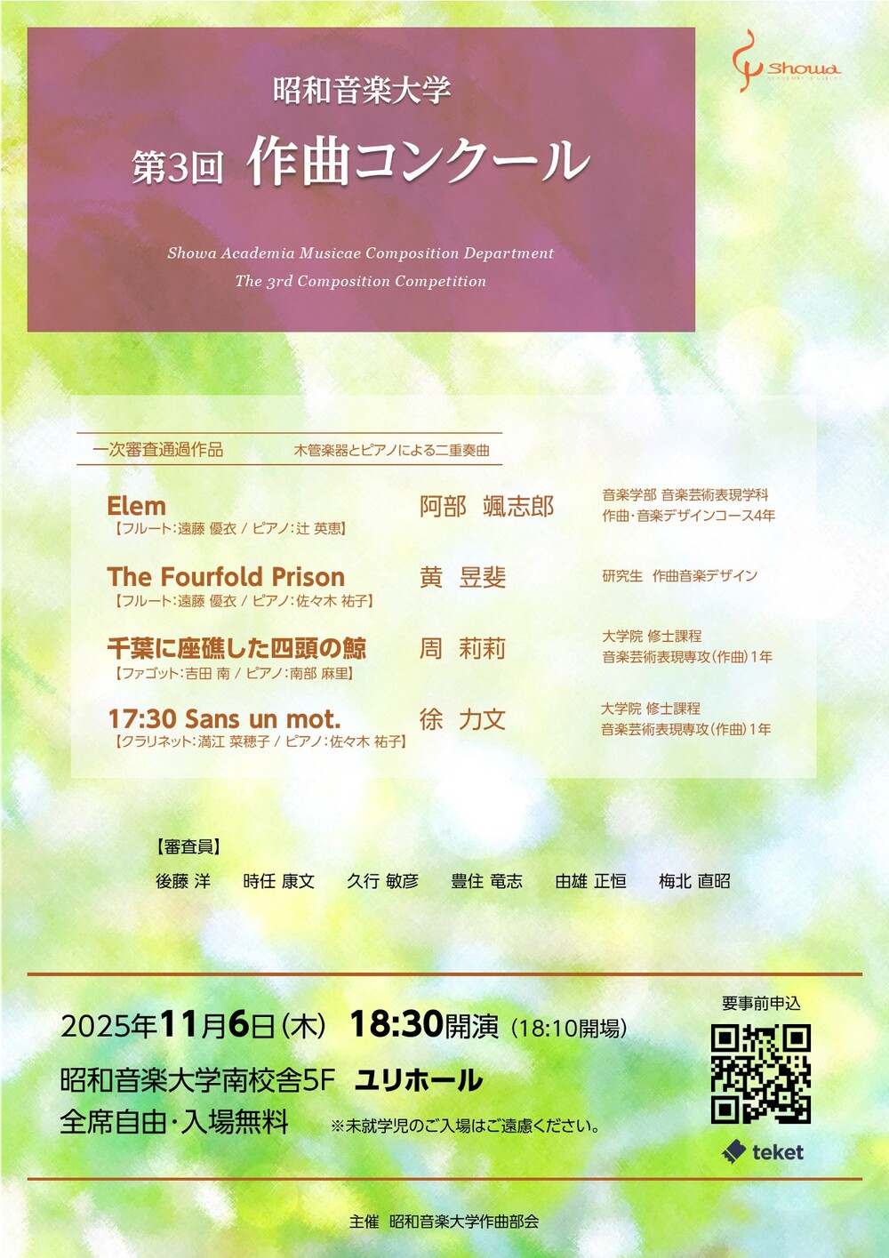 17:30 Sans un mot. 作曲:徐 力文(大学院 修士課程 音楽芸術表現専攻(作曲)1年)