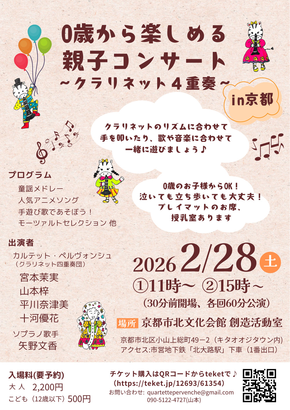 0歳から親子で楽しめるクラリネット4重奏のコンサートです。
