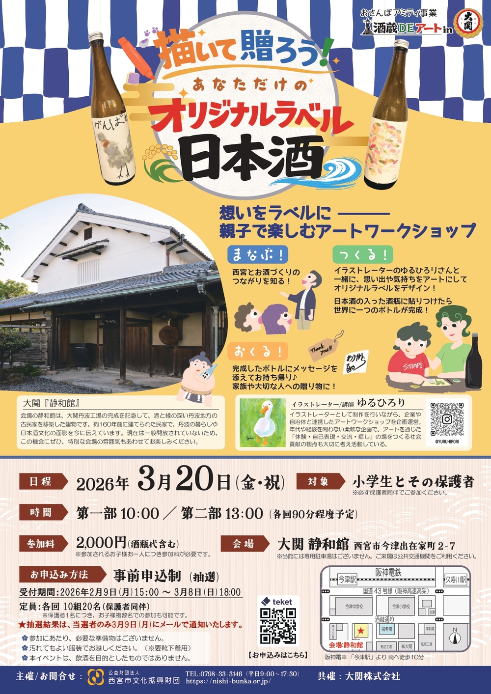 西宮とお酒づくりの関係を学びながら、想いをアートで表現する親子向けのアートワークショップ。