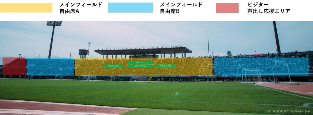 ※FCふじざくら山梨の応援席につき、ビジターチームのユニフォーム、グッズを着用しての観戦はできません。