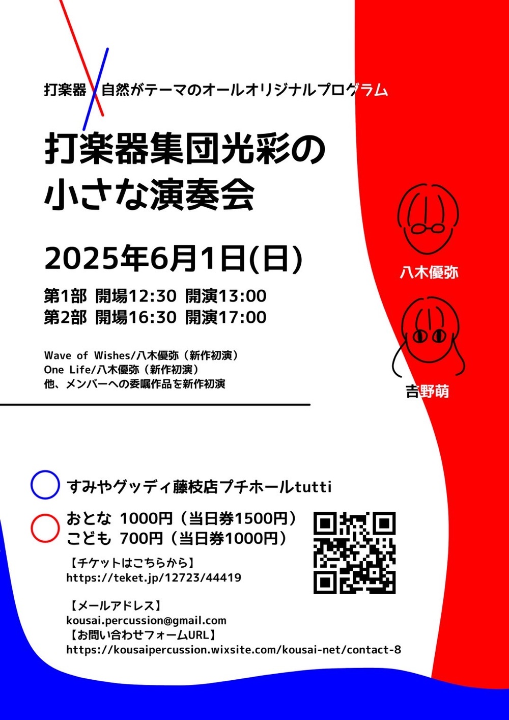打楽器集団光彩第2回目の演奏会です。小さな会場を大いに活用し、皆様に「打楽器×自然」の音色をお届けします。