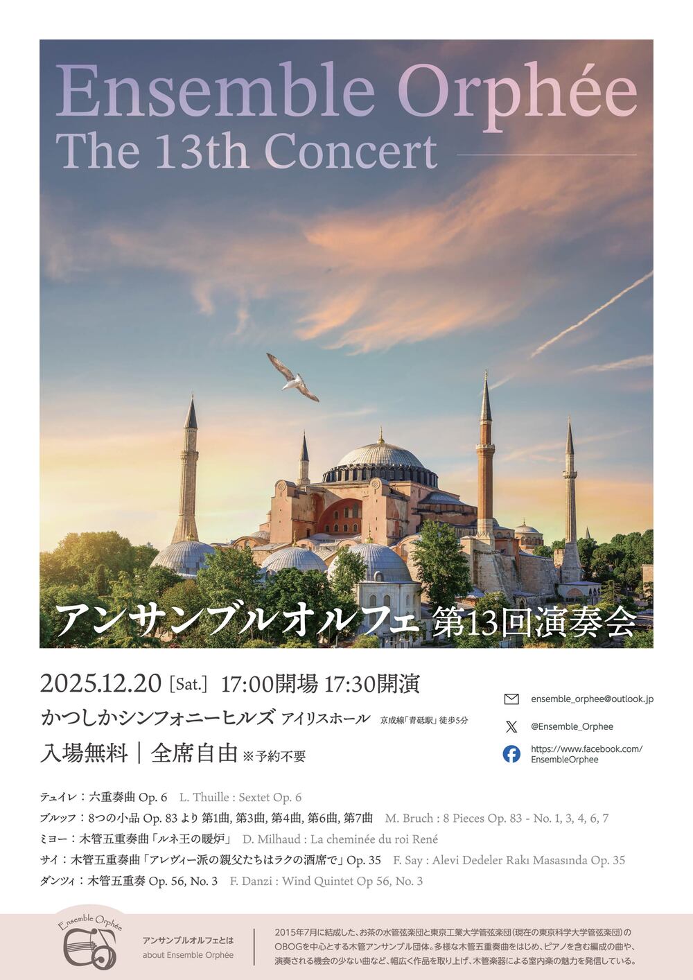 アンサンブルオルフェはお茶の水管弦楽団、東京工業大学管弦楽団(現・東京科学大学管弦楽団)のOBOGを中心に結成した木管アンサンブル団体です。