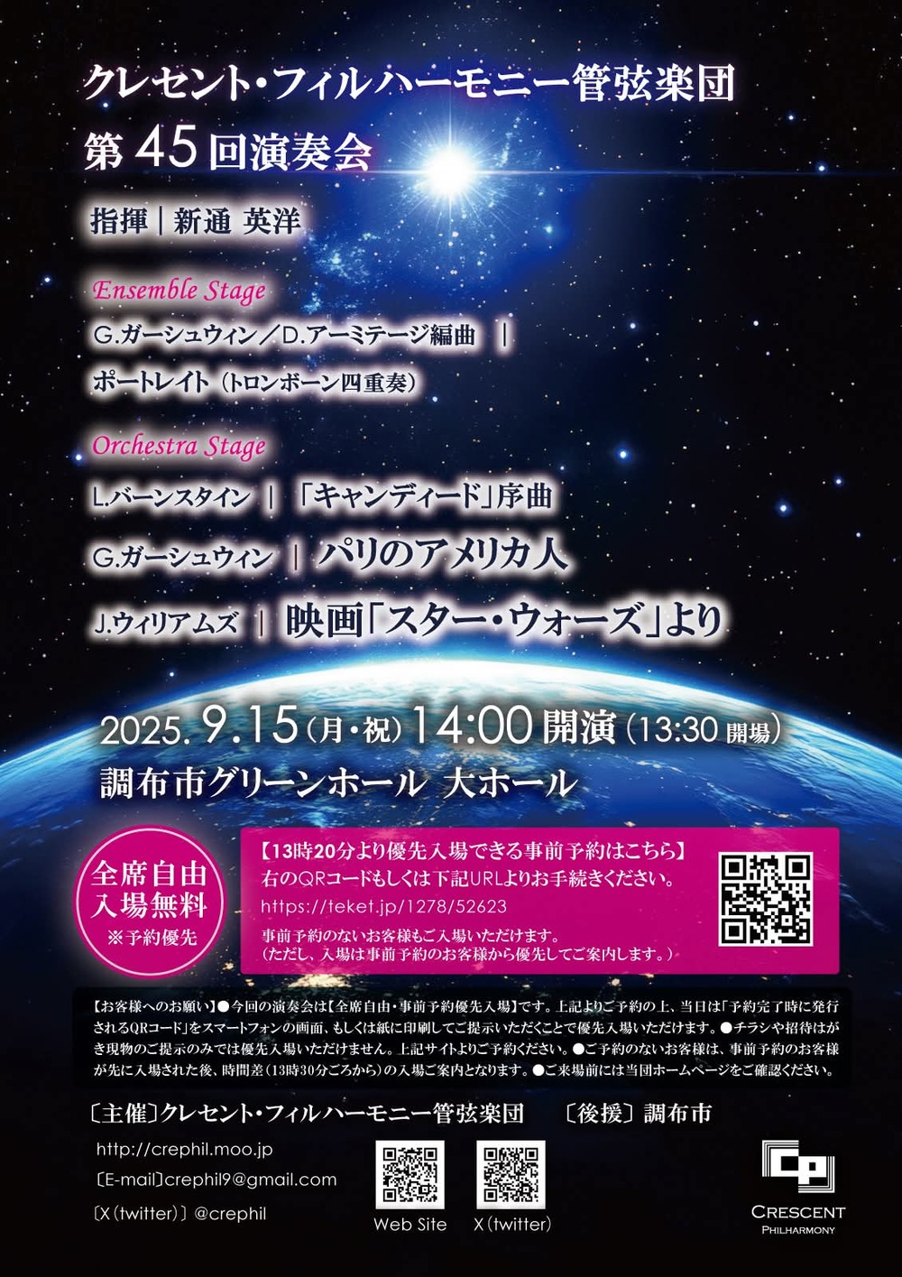 45回目の演奏会は、クレセント・フィル初となるアメリカン・プログラムに挑戦します。