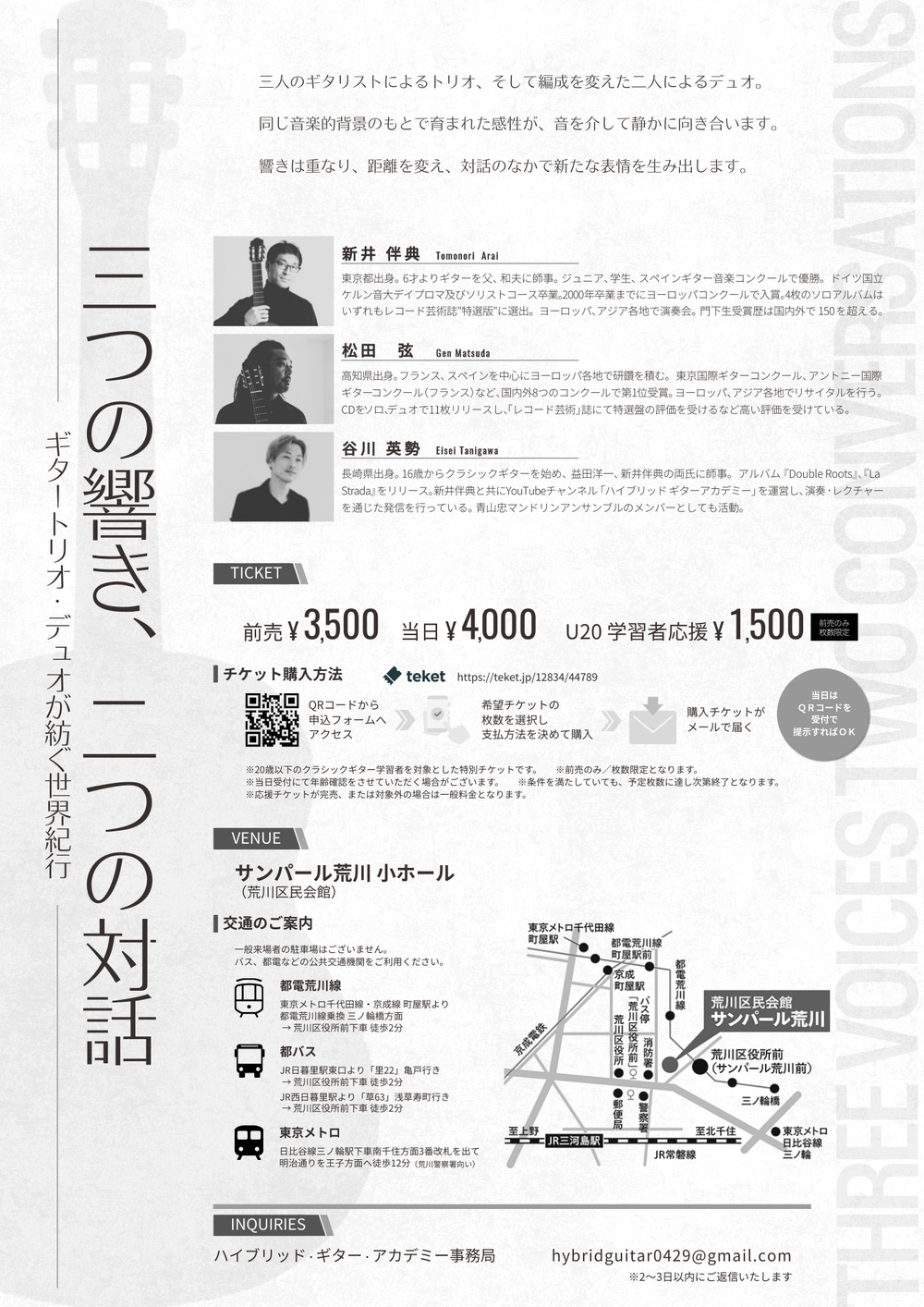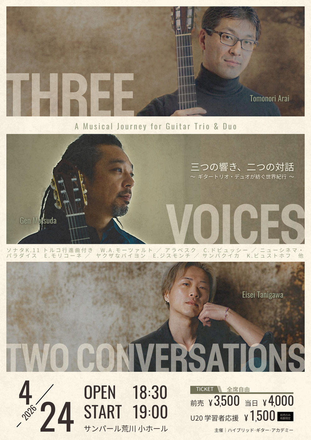 三人のギタリストによるトリオ、そして編成を変えた二人によるデュオ。