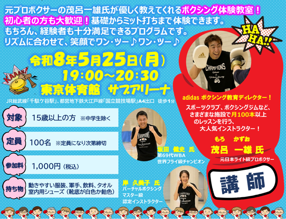 元日本ライト級プロボクサーの茂呂一雄氏が優しく教えてくれるボクシング体験教室です!