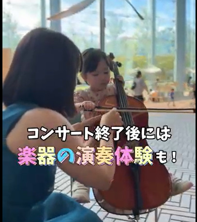 公演後の楽器体験はヴァイオリン、チェロ、コントラバス、打楽器の4種類!お子さま1人につき1つ、全員体験して頂けます♪