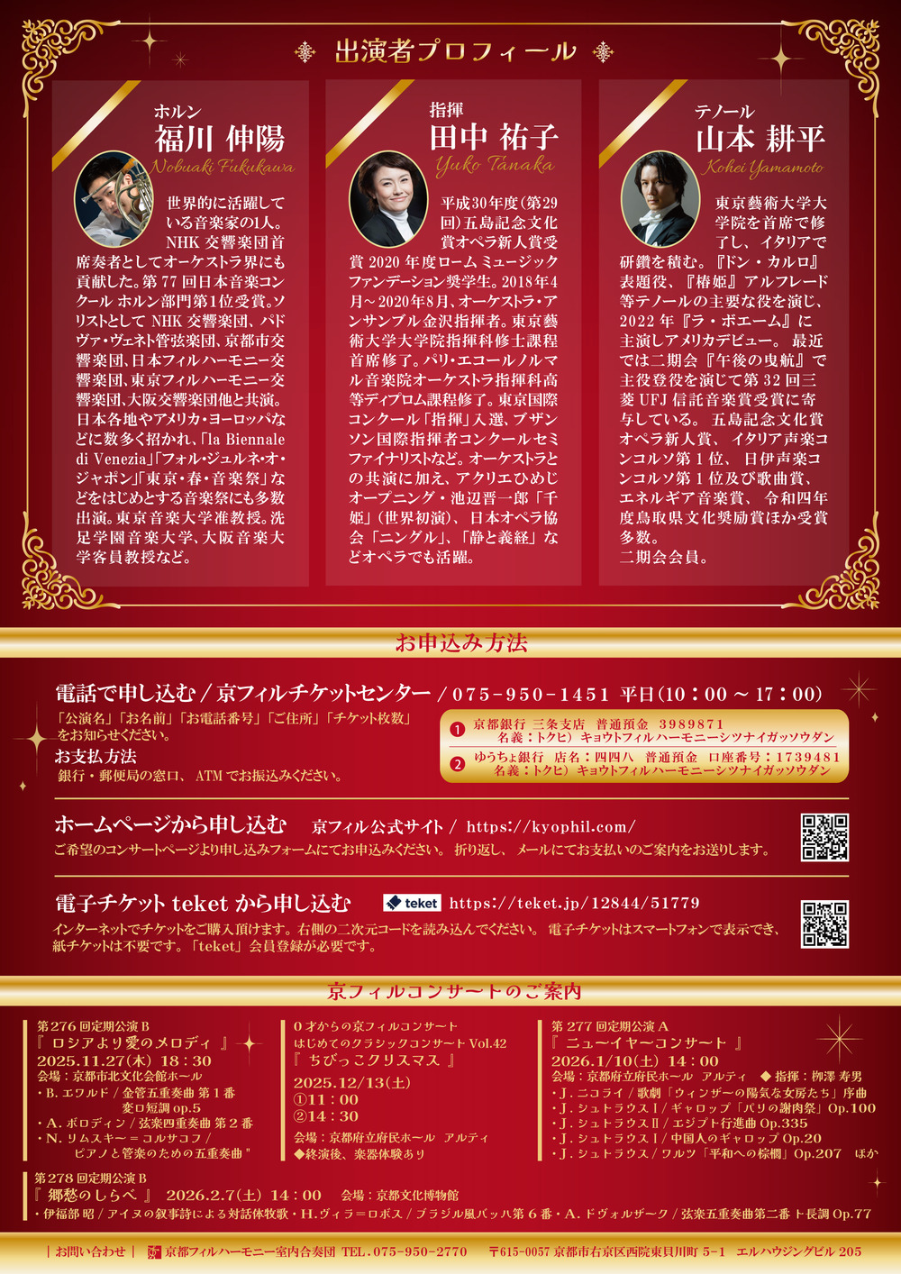 大活躍の指揮者田中祐子、ホルンの名手福川伸陽、テノールの若手代表山本耕平を