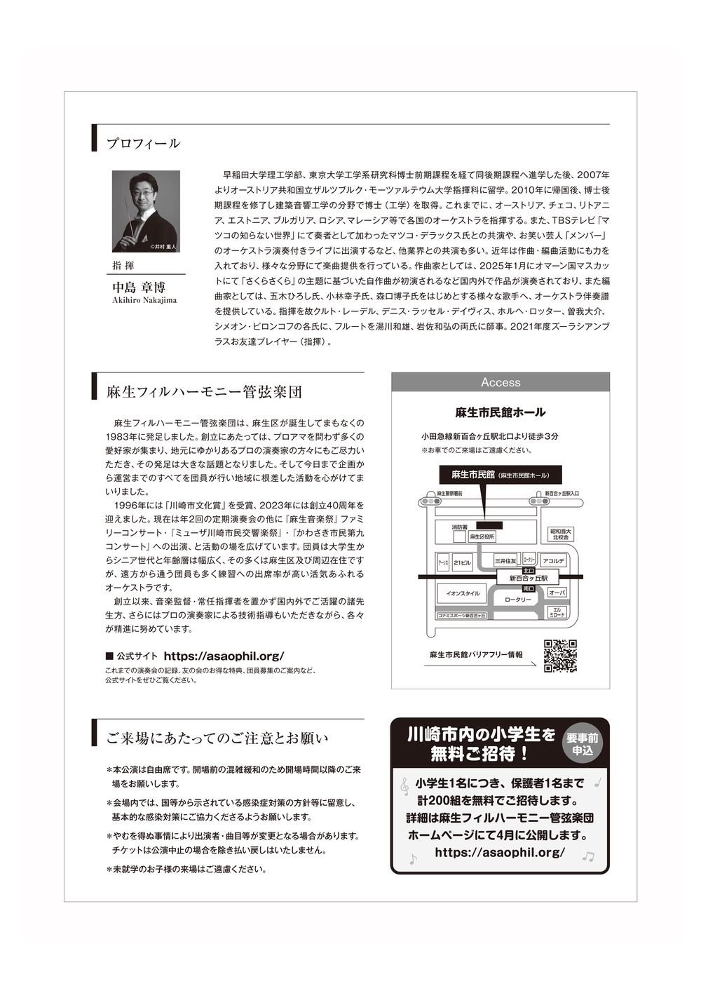 主催:麻生区文化協会、麻生フィルハーモニー管弦楽団