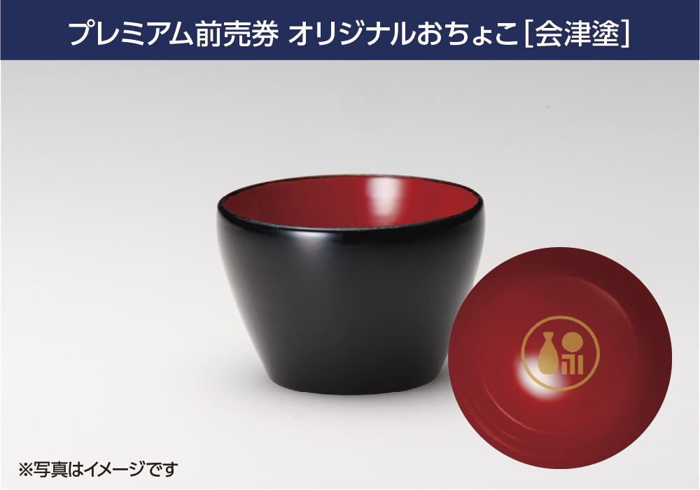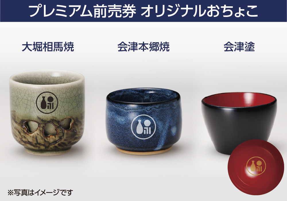 お得な前売券、福島の伝統工芸品のオリジナルおちょこが付いたプレミアム前売券を販売。