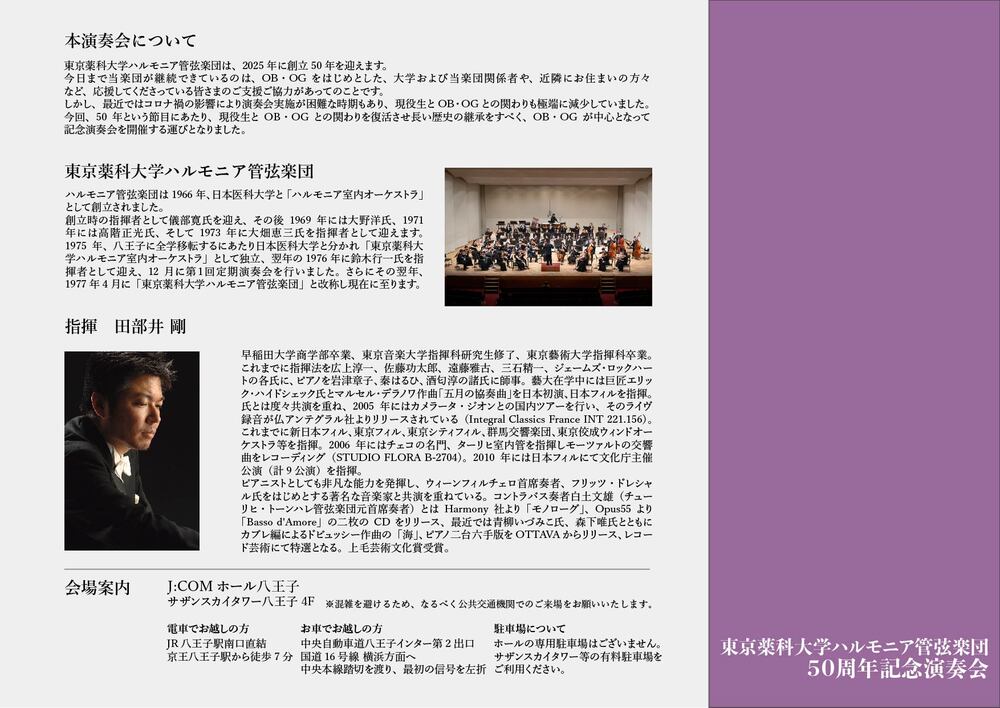 演奏 東京薬科大学ハルモニア管弦楽団50周年記念演奏会(ハルモニア管弦楽団現役学生、OB・OG)