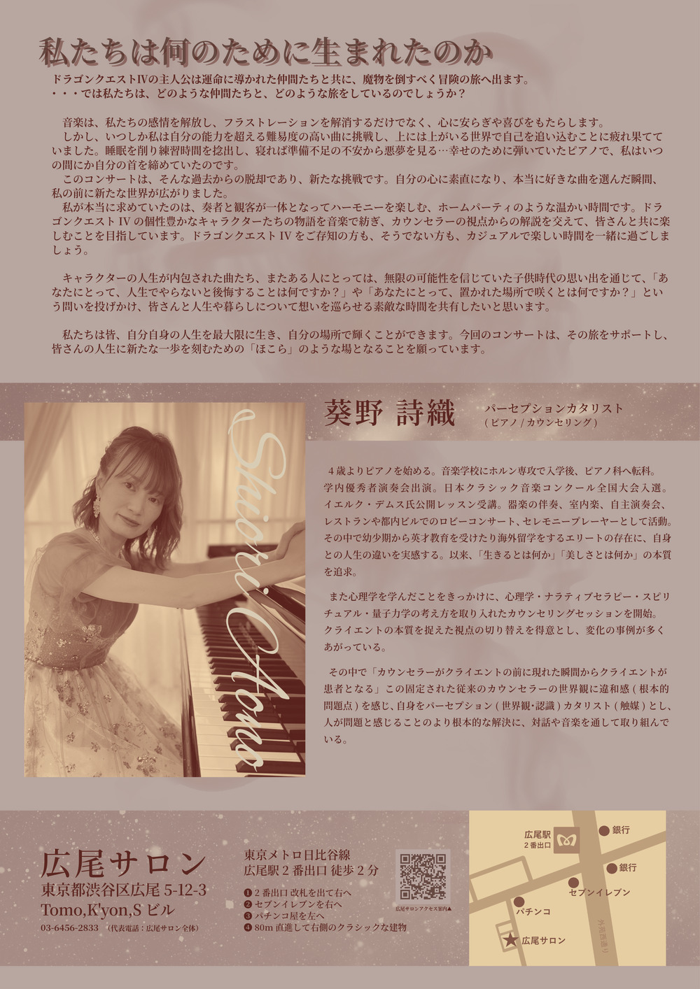 そんな発見に満ちたひととき。ドラゴンクエストIVのエピソードから、ご自身の人生の冒険を感じるセラピーにも似た特別な時間を、ぜひご一緒に。
