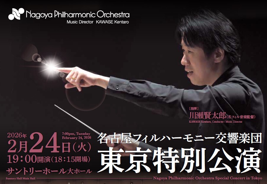 今シーズンの東京公演はサントリーホールで開催します。サントリーホールでの開催は2021年以来4年ぶりとなります。名フィルサウンドが音楽の殿堂であるホールでどのように響くのか、僕も今からとても楽しみにしています。(川瀬賢太郎)