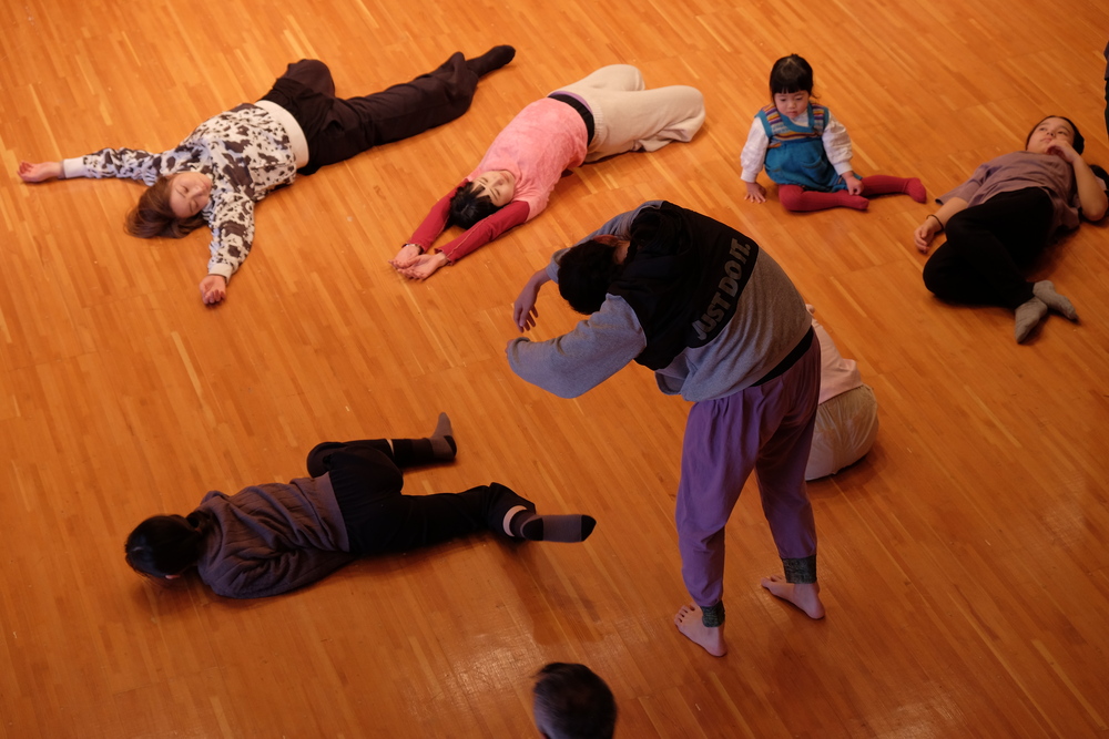 風や光、地面の感触、人との距離に応答しながら、身体をひらき、触れ、触れられ、その土地のダンスを立ち上げていきます。滋賀の身体と風景が、影響し合いながら交差していった時間。