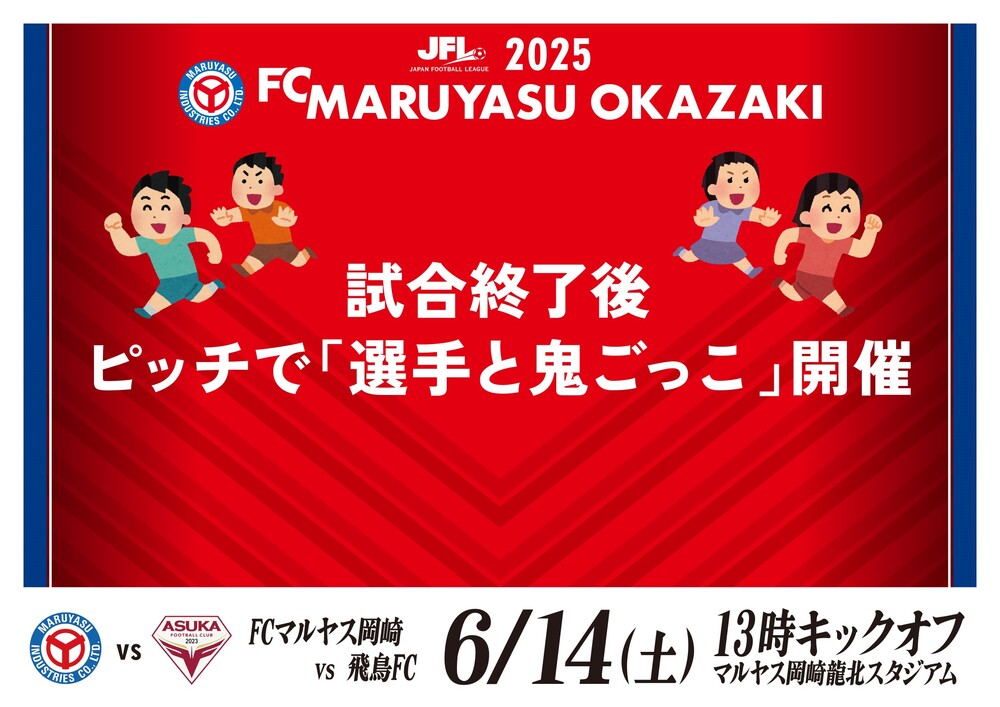 試合終了後→「選手とピッチで鬼ごっこ」を開催