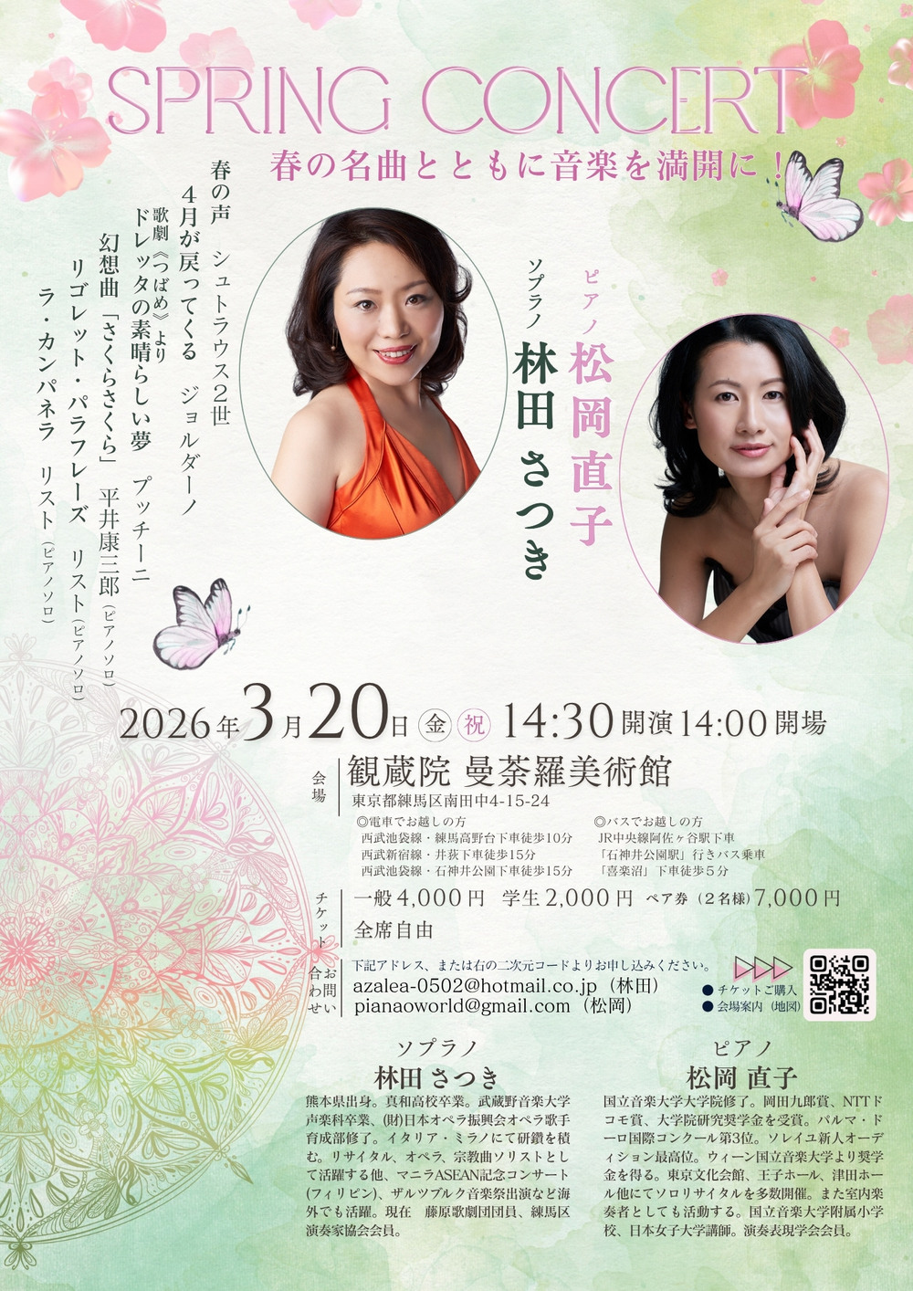 満開の桜と共にクラシック他、ピアノ・歌の名曲をお届けします。