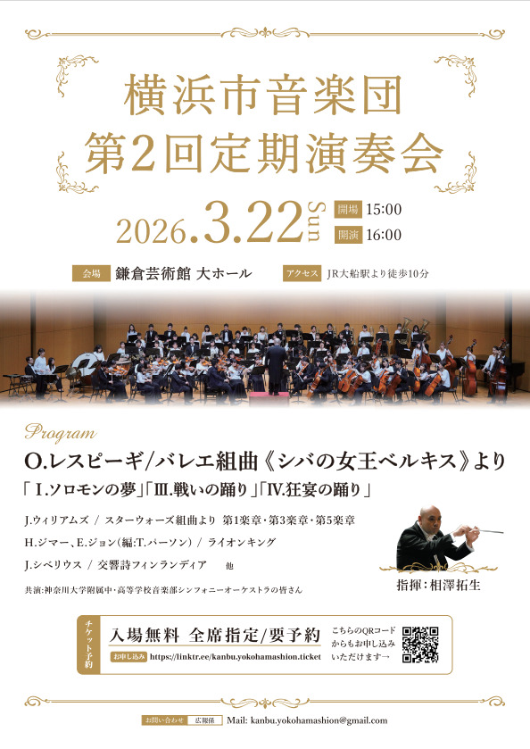 演奏:横浜市音楽団、神奈川大学附属中・高等学校音楽部シンフォニーオーケストラ
