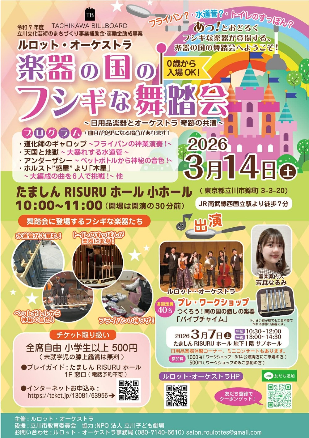 【3/7(土) 手作り楽器製作&日用品楽器体験ワークショップ】