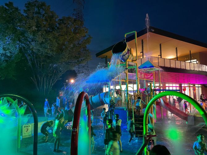夜のオアシスパークで水遊びを楽しもう!