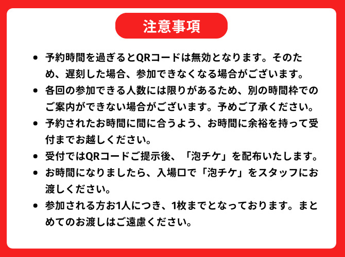 ※時間厳守、予約時間を過ぎるとQRコードは無効となります。