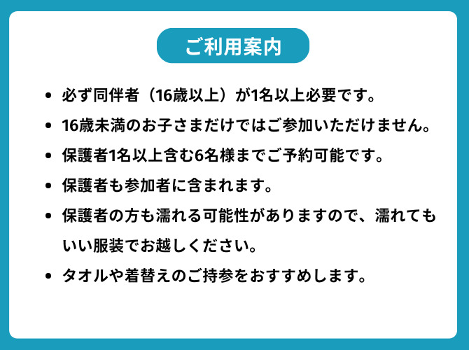 ※お申し込み後のキャンセル・人数や時間の変更は出来ません。
