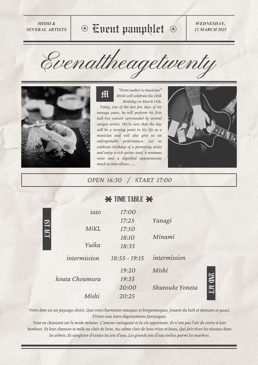 都内でも有数の本格的なホールにて、シンガーソングライターたちが各々の音楽を紡ぎます。溢れ出る個性と豊かな音楽性が、あなたに、アコースティックの良さを、アコースティックギターの奥深さを再発見させることになるでしょう。