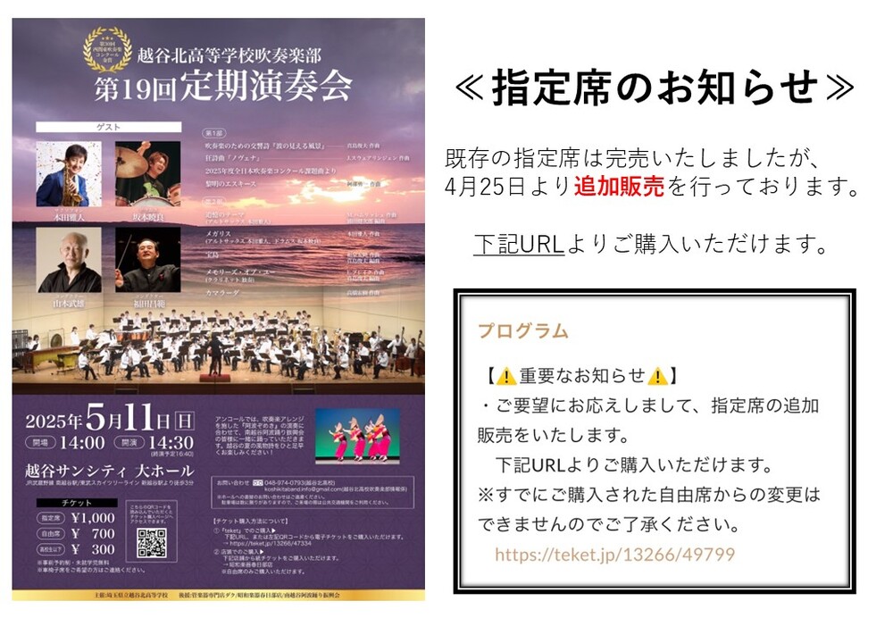 ・ご要望にお応えしまして、指定席の追加販売をいたします。