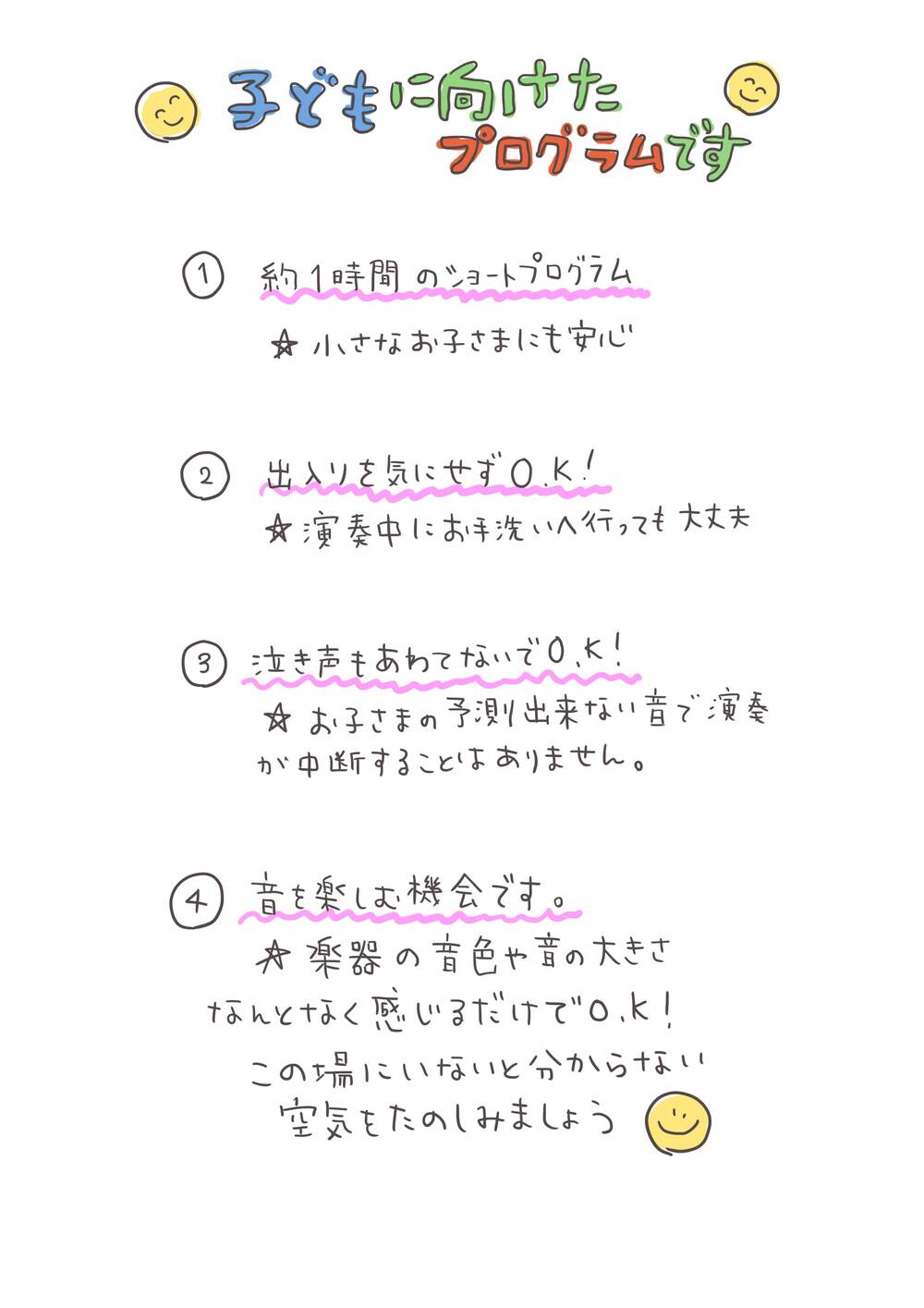 小さなお子様が緊張せず楽しめる音楽鑑賞をコンセプトにしております。