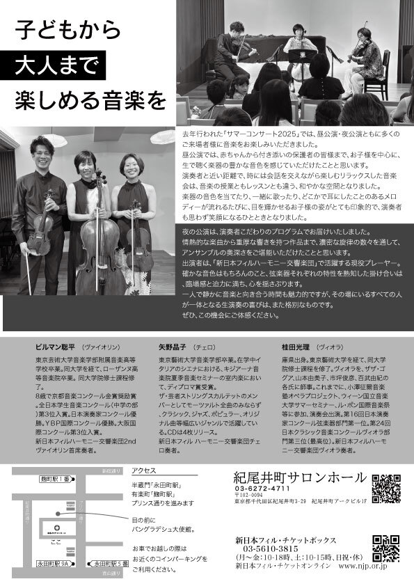 その他のお問い合わせ先:紀尾井町サロンホール TEL 03-6272-4711