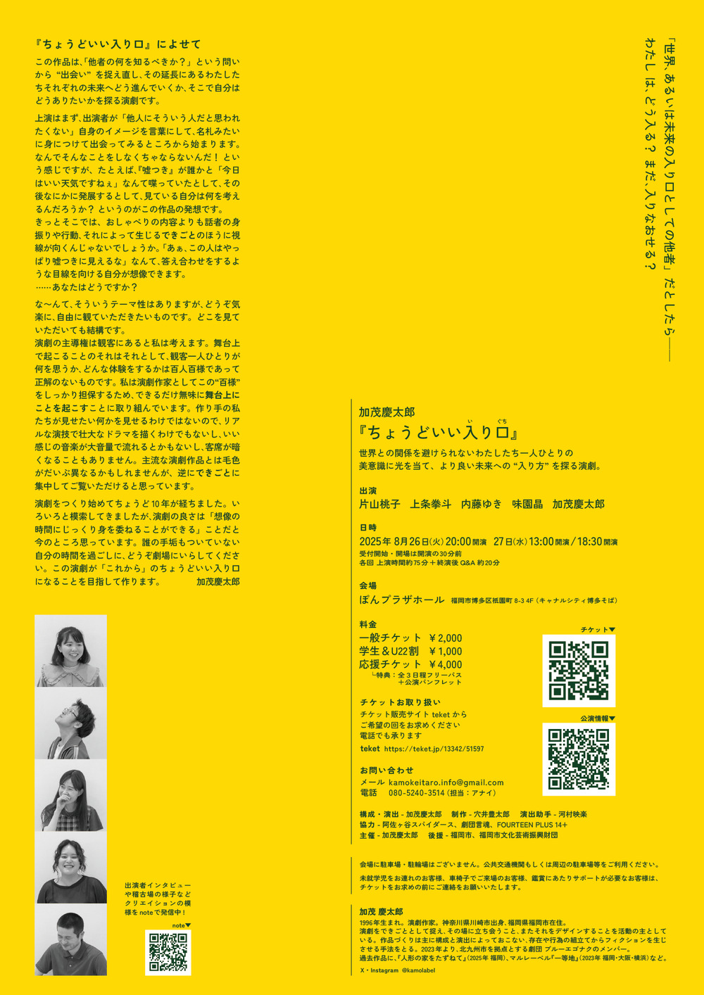 ※応援チケットは、特典つきのチケットです。《特典:『ちょうどいい入り口』全3日程フリーパス+公演パンフレット》