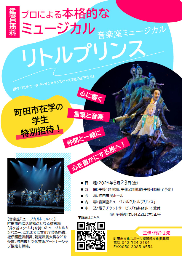 町田市民ホールにて、市内に活動拠点を持つ「音楽座ミュージカル」による特別公演を開催します。