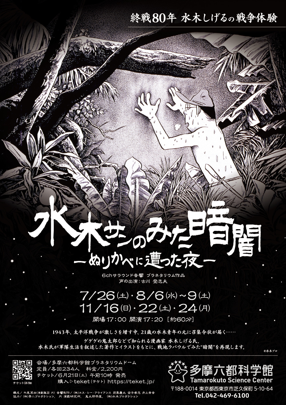 1944 年(昭和 19 年)の戦地ニューブリテン島での日々を、プラネタリウムの暗闇と6ch サラウンド音響とともに追体験していただきます。