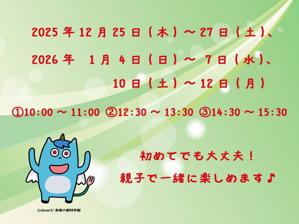 開催日:2025年12月25日(木)~27日(土)、2026年1月4日(日)~7日(水)、10日(土)~12日(月)
