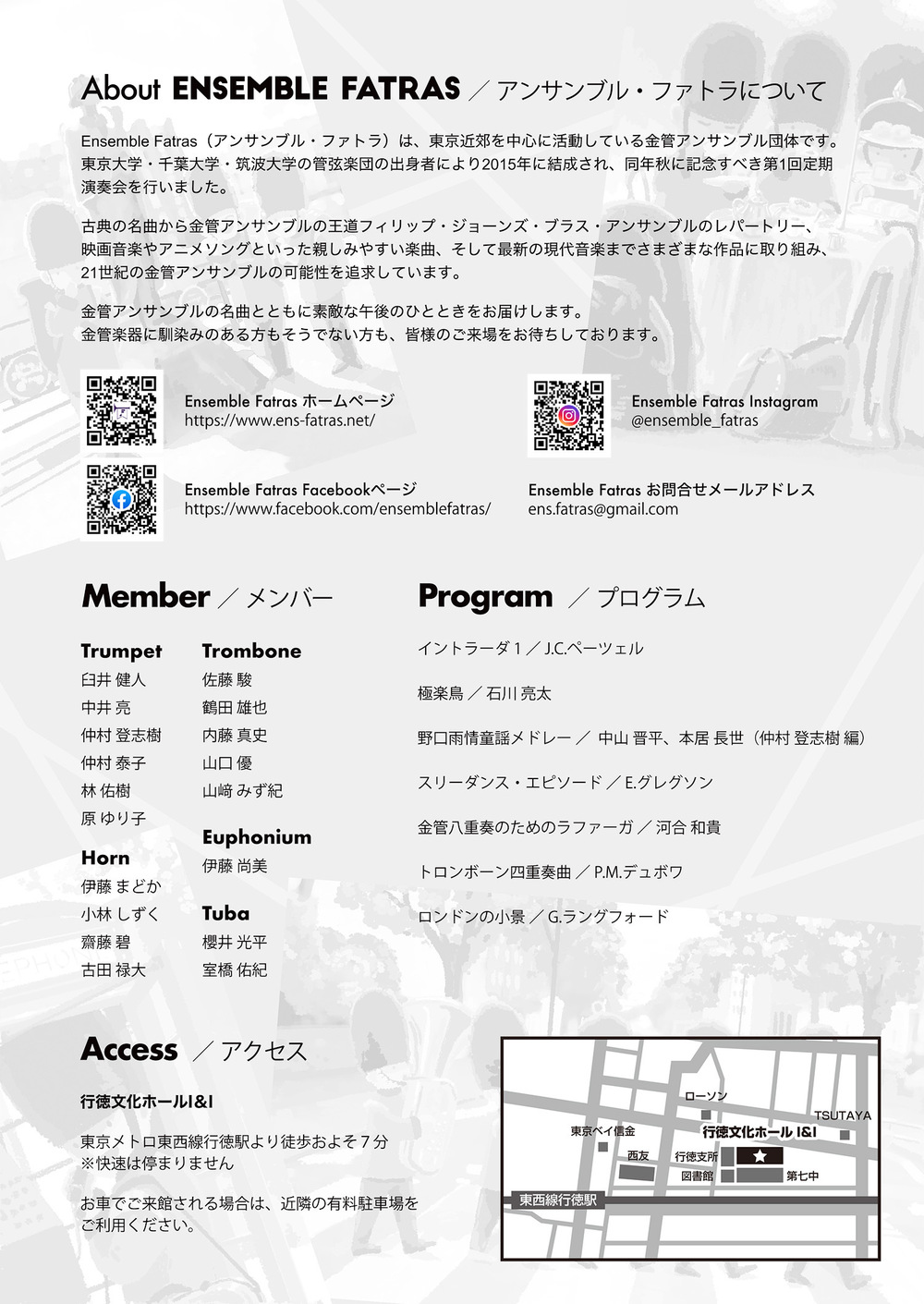 Ensemble Fatras(アンサンブル・ファトラ)は、東京大学・千葉大学・筑波大学の管弦楽団の出身者により結成され、東京近郊を中心に活動している金管アンサンブル団体です。