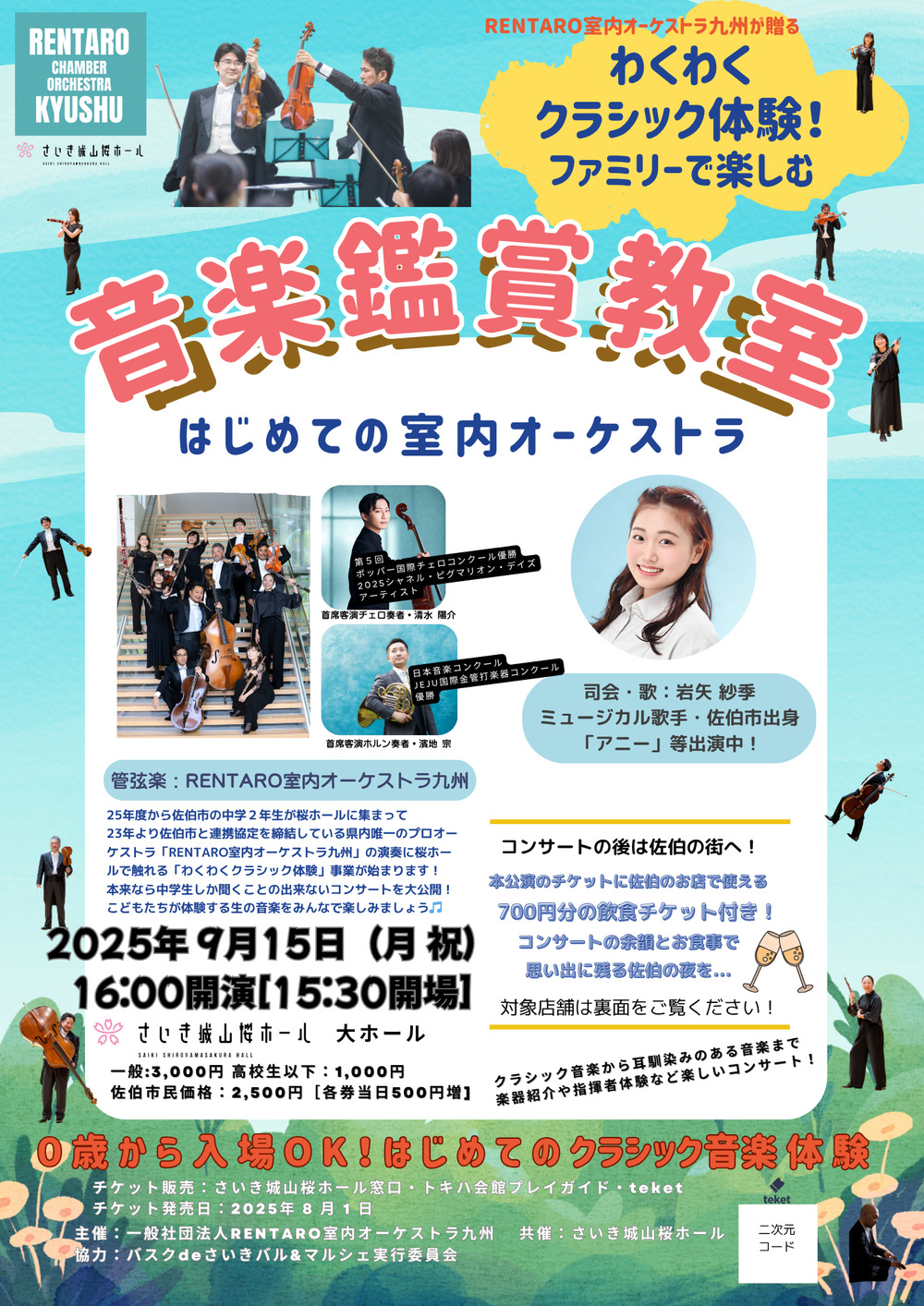 23年より佐伯市と連携協定を締結している県内唯一のプロオーケストラ「RENTARO室内オーケストラ九州」の演奏に桜ホールで触れる「わくわくクラシック体験」事業が始まります!