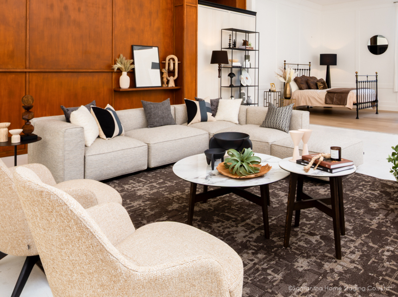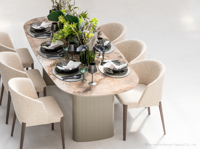 展示に使用した家具やインテリアアイテムを、特別価格でご提供。国内外のラグジュアリーブランドから、トレンドを感じられるリーズナブルなアイテムまで、ステージングのプロが選定した上質なアイテムを、実際にご覧いただき、気に入ったものはその場でご購入いただけます。