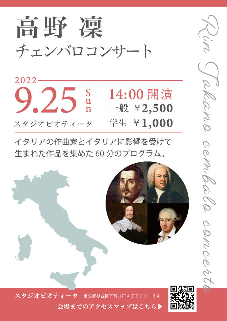 2000年東京都生まれ。6歳よりチェンバロを始める。 イタリア国立Avellino音楽院歴史鍵盤学科を首席で卒業。 チェンバロを曽根麻矢子、Enrico B…