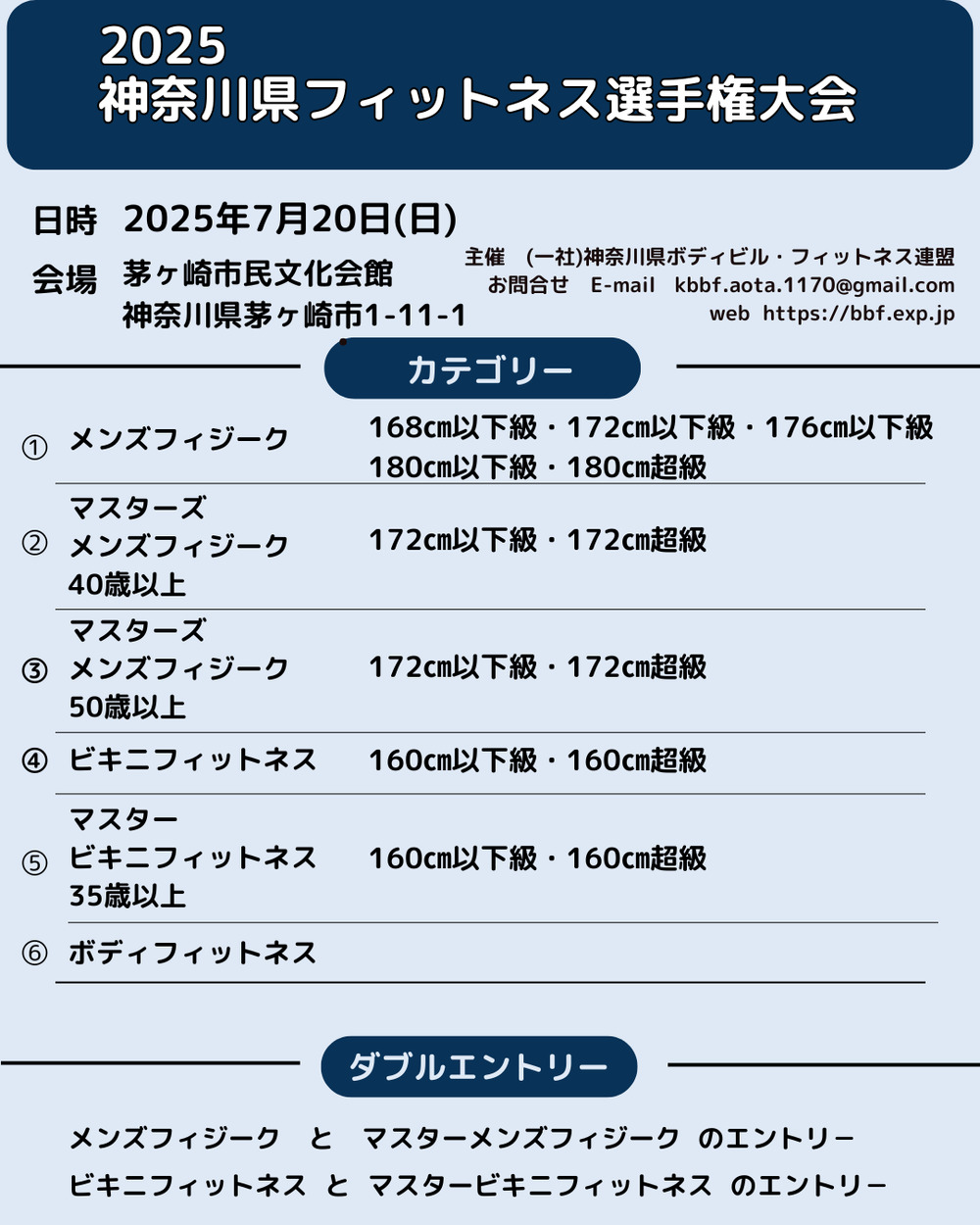 神奈川県ボディビル・フィットネス連盟のホームページをご覧ください。